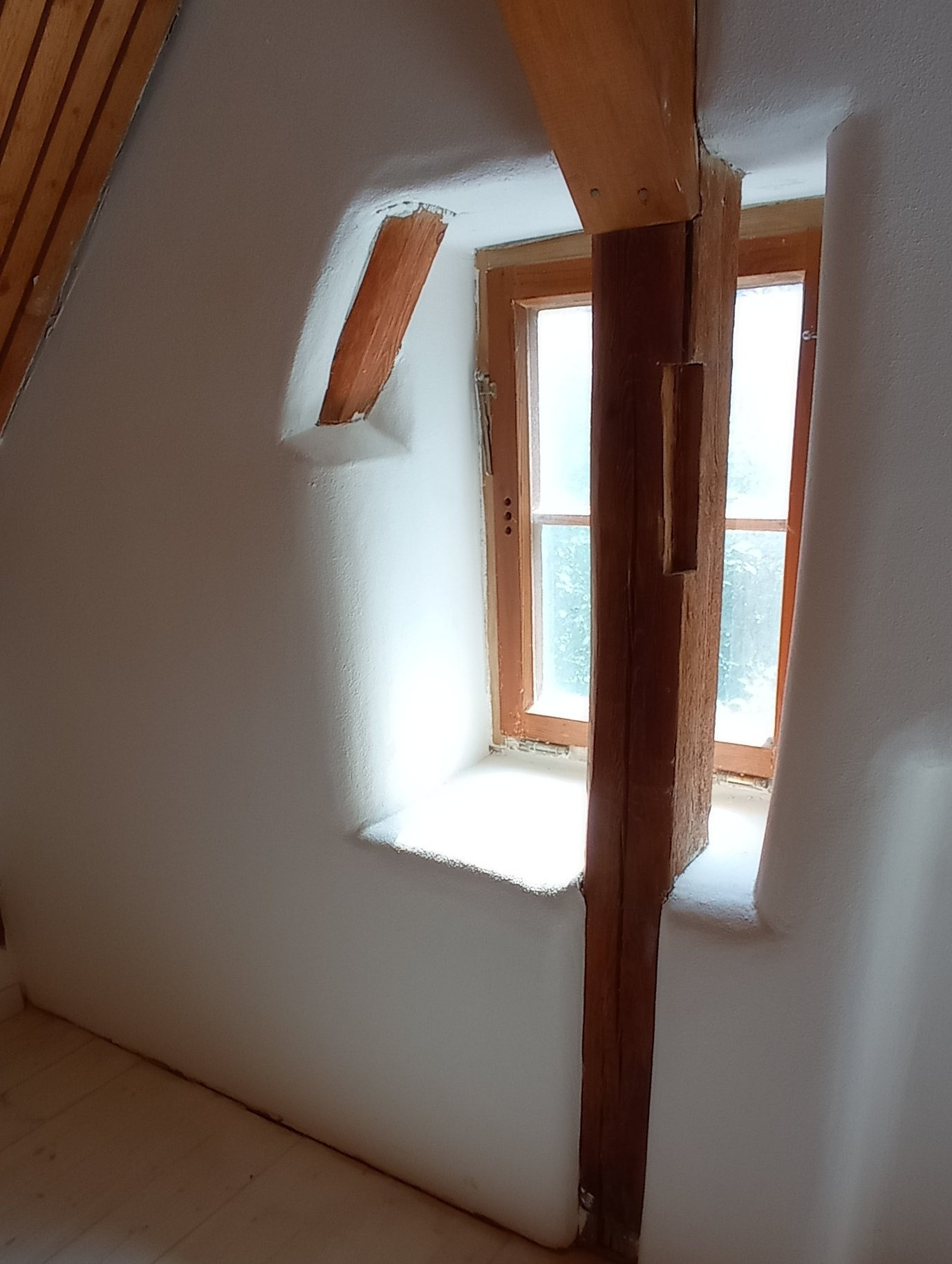 Sanierung Bauernhaus : Die Wandflächen aus Lehm wurden komplett mit Lehmbaustoffen verfestigt und saniert. Die organischen Formen wurden egalisiert. Als Finish wurde hier ein natürlicher Kalkfeinputz ,als Anstrich eine Sumpfkalkfarbe verwendet. Alles zusammen bereitete der Bauherrschaft grosse Lust mit ihren Kindern hier einzuziehen.